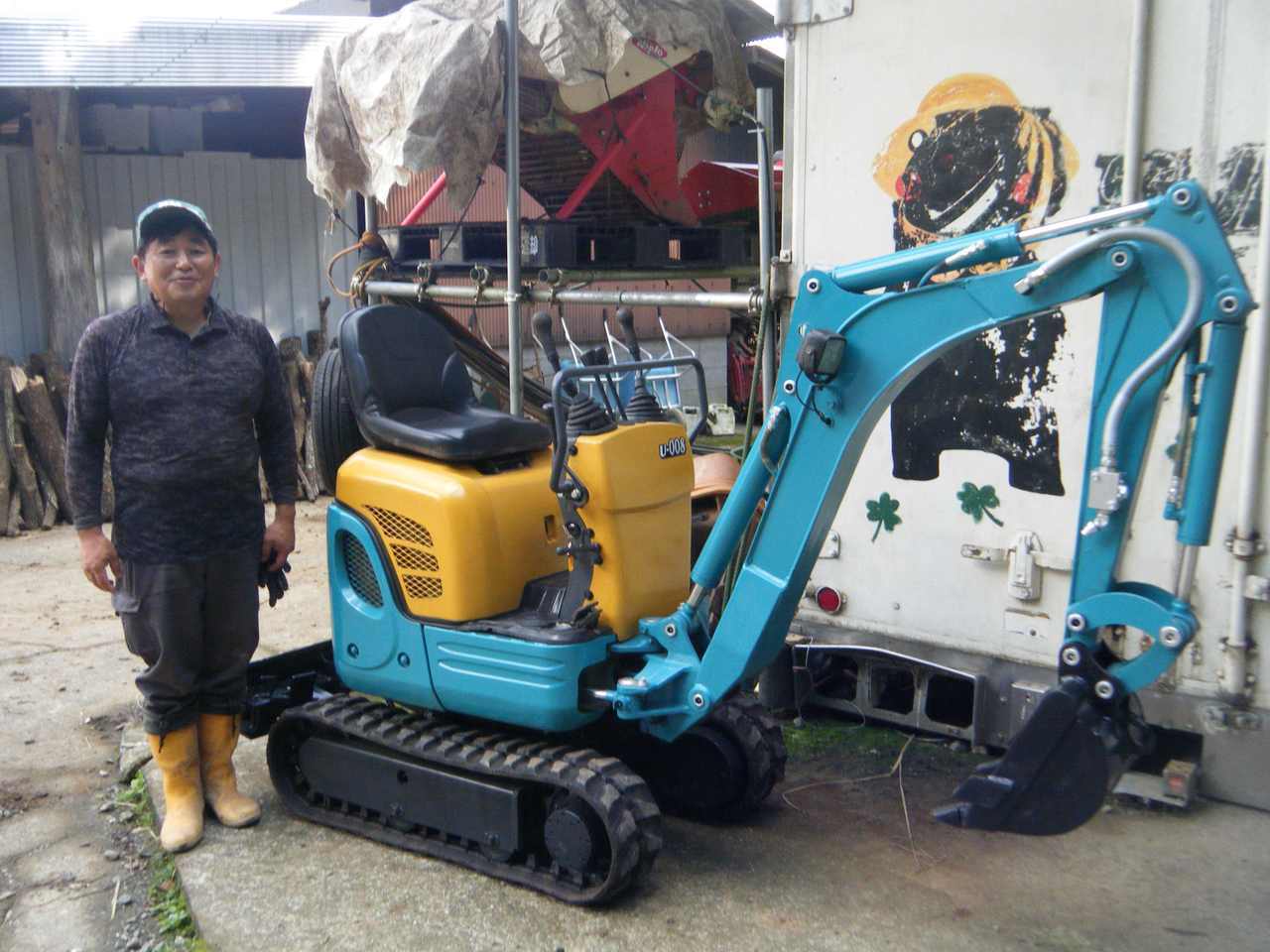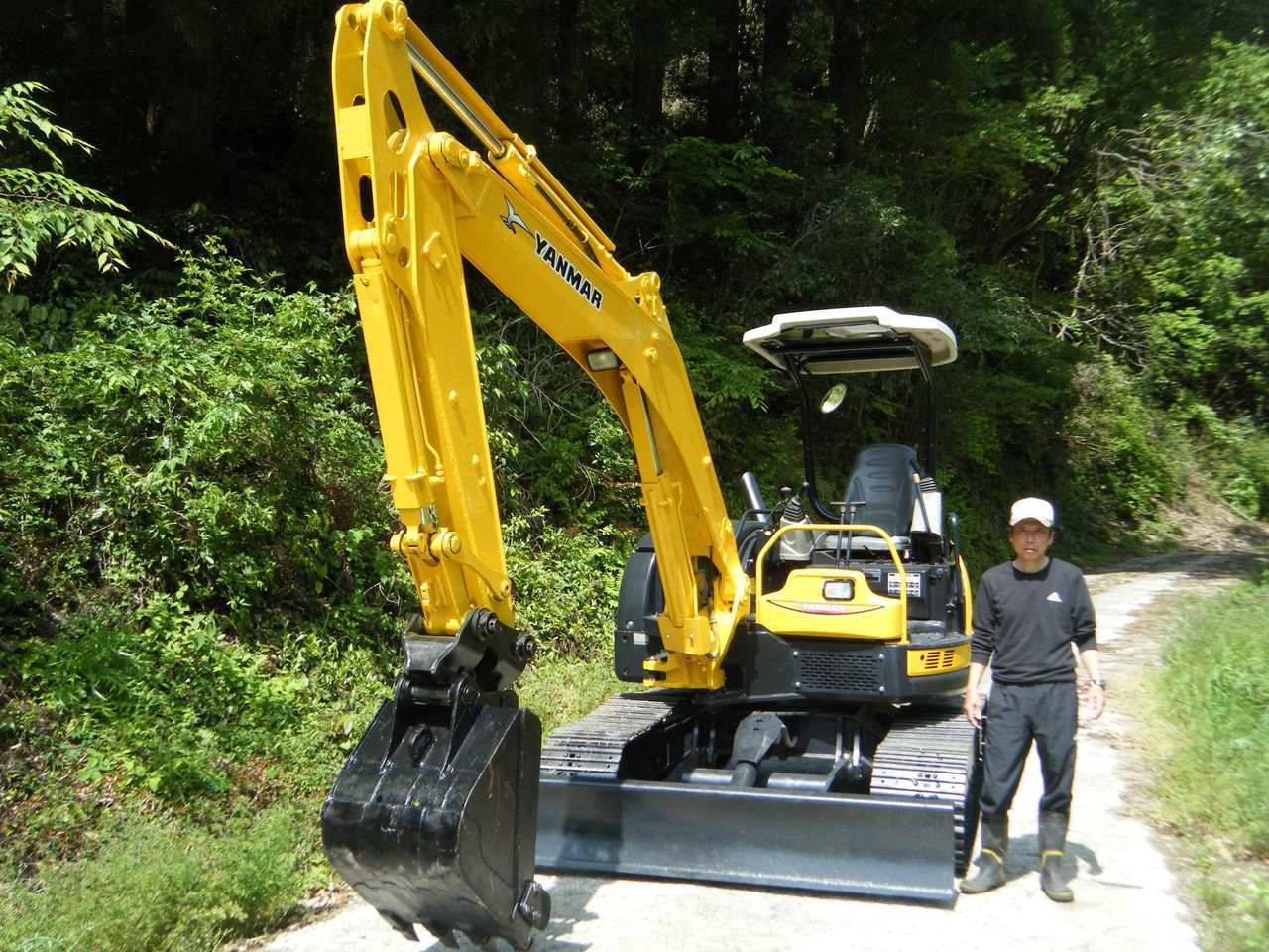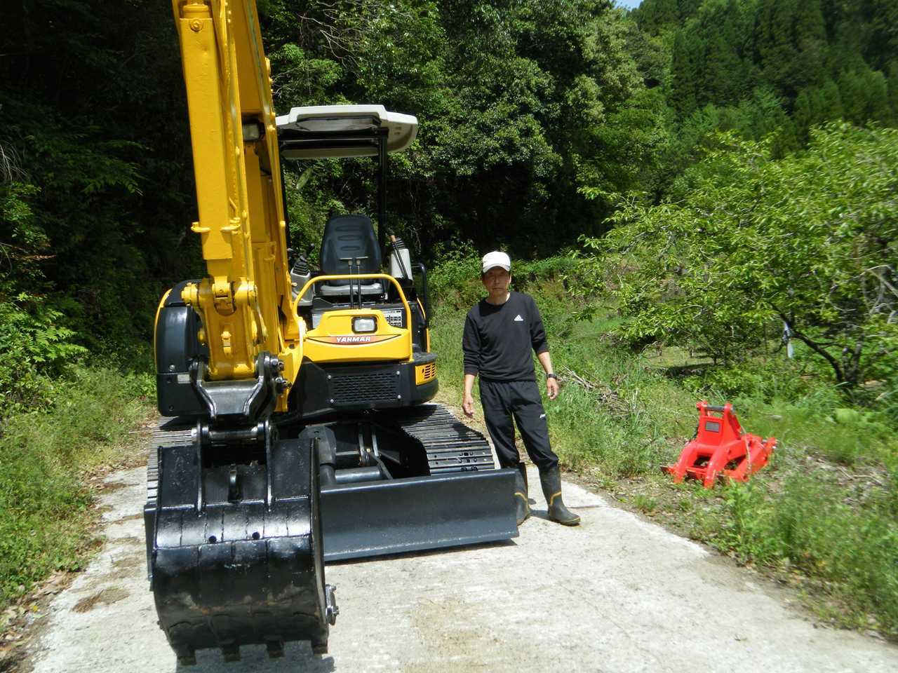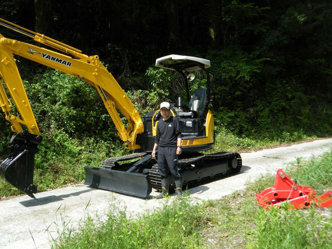 ヤンマー Vio50-5Bをご購入頂いた高野様です。 ゴムクロを鉄シューに交換し、機械式クイックヒッチを取付クイックヒッチ対応のフォーククローも同時にご購入頂きました。有難うございます。 休みの日にご自身所有の山の管理に使うとの事です。