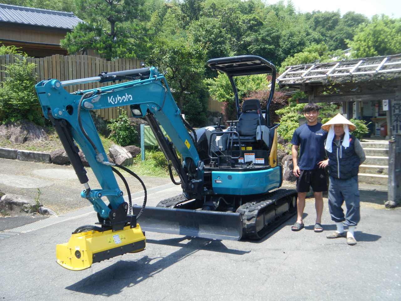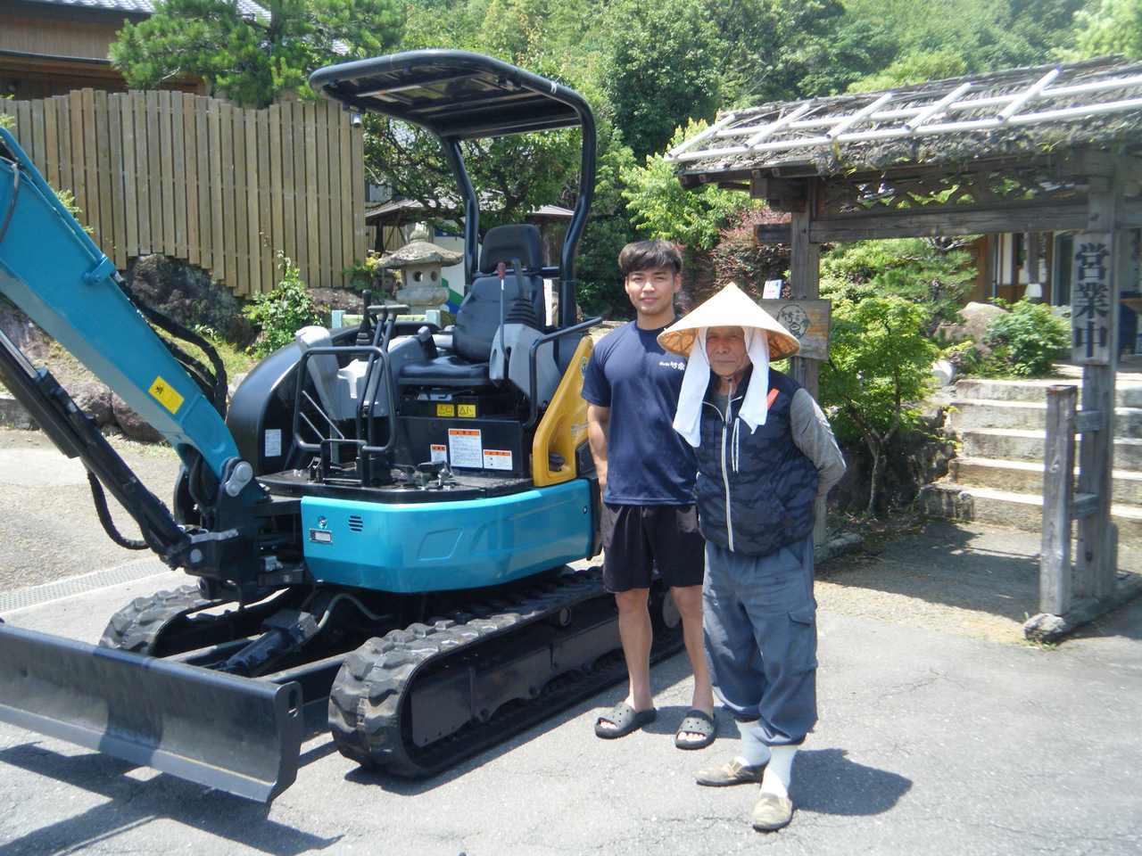 1枚目の写真は以前ご購入頂いたクボタRX303の点検整備が終わり納入した時の写真です。 大津様は由布市挟間町で竹泉(たけせん)という湯処を営んでいます。 敷地内の樹木や石垣の管理やその他の作業にミニバックホーが活躍しています。 今回新しくクボタU-30-6(油圧草刈り機付)をご購入頂きました。 写真は社長の次男と会長のお父様です。次男の方は筋トレが趣味でかなり鍛えています。 長男の方は20代で今年、大分市議会議員に初当選しました。おめでとうございます。 お風呂も色々な場所に個性的な家族風呂や露天風呂が点在していて楽しく癒される空間です。 予約・お問合せはお早めに